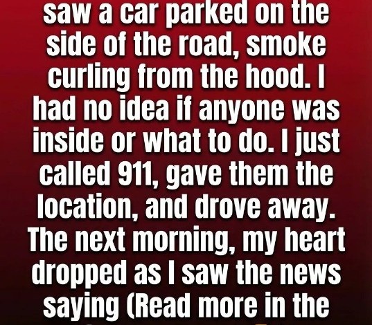 The next morning, everything took on a different weight. As I scrolled through the news, a headline caught my attention. It described a vehicle found on that same stretch of road around the time I had passed by. A knot formed in my chest as I read further. Details were still unclear, but it was enough to make me pause and replay the moment in my mind, again and again, wondering if my hesitation mattered more than I had thought.