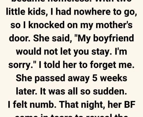 At twenty-four, I lost my job—and with it, any sense of stability. With two young children relying on me, I ran out of options and, despite my pride, went to my mother’s house. When she opened the door, she looked thinner than I remembered, her eyes tired but still kind.