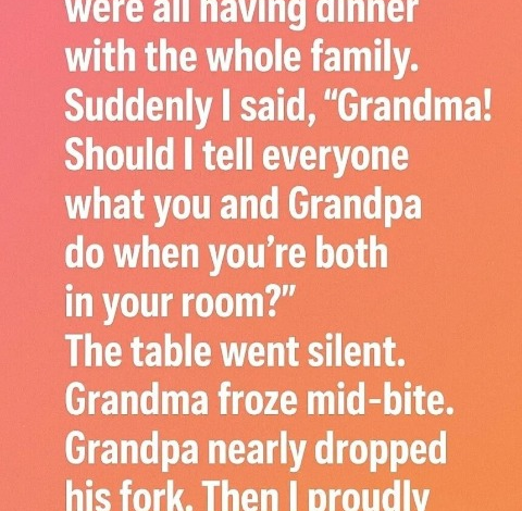 The room went silent. Grandma froze mid-spoon, and Grandpa’s eyes widened in panic. I didn’t understand the tension—I thought I was sharing something exciting. With full confidence, I finished, “She makes him practice card tricks!”