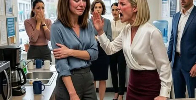 Emily’s head turned with the impact, her cheek burning. Around them, employees froze in shock. Slowly, she faced Vanessa again, a faint red mark rising on her skin, and asked in a voice so calm it unsettled everyone, “Your husband?”