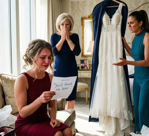 I unzipped my wedding dress bag on the morning of the ceremony and found something I had never chosen: a larger, puffier dress covered in rhinestones. Then I noticed the note pinned inside. It said only, “You’ll thank me later. — Judith,” and suddenly nothing felt right.