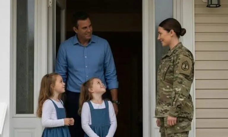 Months later, life found a new rhythm. Emily rented a small townhouse nearby. On weekends, the girls stayed over. They made pancakes, watched old Disney movies, and filled the walls with crayon drawings. One hung in a place of honor: a new picture of the three of them—Emily in uniform, the twins holding her hands.