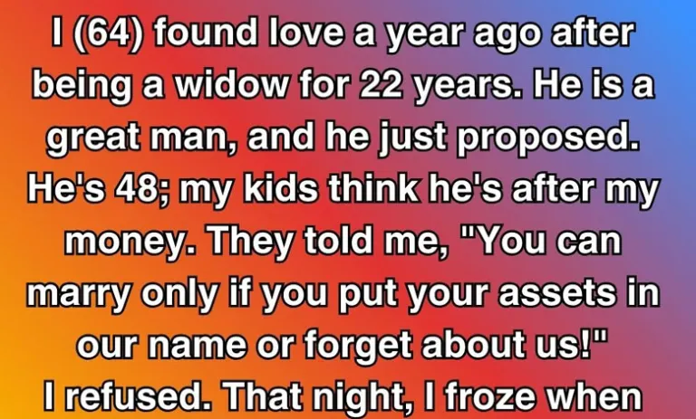 The next morning, I called a lawyer. Not to change my will. To understand exactly where I stood. Turns out, everything I own is in my name. House, savings, pension. No one can make me do anything. Still, I didn’t want a fight. I wanted a family.