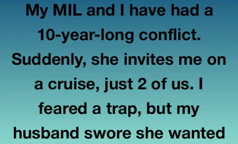 My mother-in-law and I had battled for years, so when she invited me on a cruise “to make peace,” I hesitated. On the first night, a waitress nervously warned me that my MIL had tried to bribe her to spill a drink on me — calling it a “family joke.” I stayed calm, said nothing, and finished dinner. The next day, the same waitress found me again — this time, my MIL had asked her to put something in my drink. That was it. I reported everything to ship security, moved cabins, and cut contact. My husband was furious — not with me, but with her.