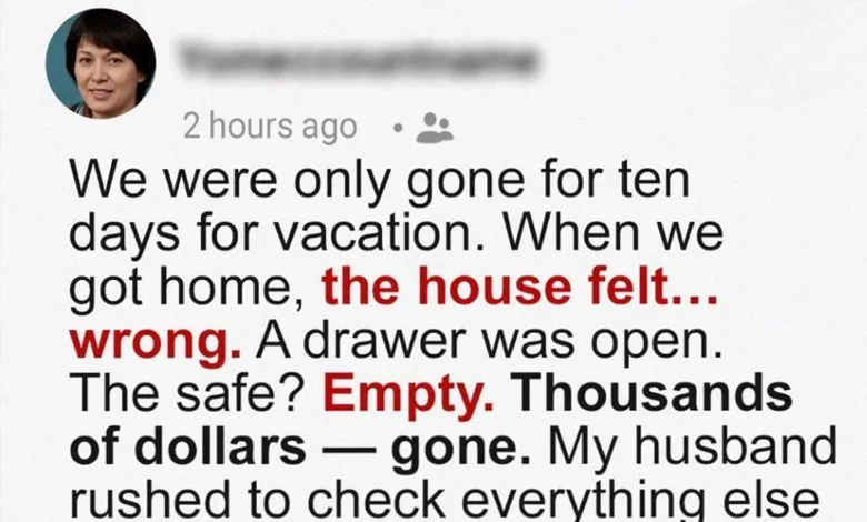 We were only gone for ten days on vacation, but the moment we stepped inside, something felt unsettling. A drawer was left open, items were scattered, and the safe we trusted was completely empty. Thousands of dollars in savings we had built over years were gone. My husband hurried to check the rest of the…