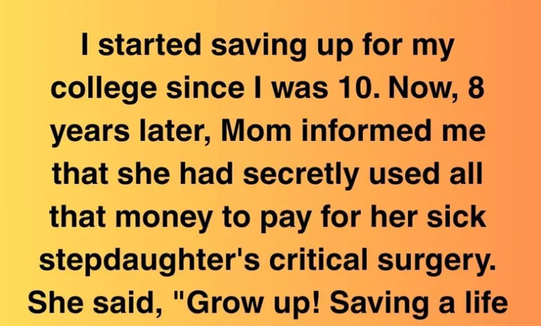 I started saving up for my college since I was 10. Now, 8 years later, Mom informed me that she had secretly used all that money to pay for her sick stepdaughter’s critical surgery. She said, “Grow up! Saving a life is more important than college.” But everyone froze when I revealed…that I already knew…