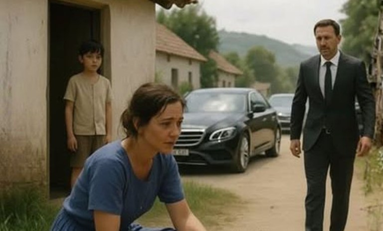 I stepped outside. Three black luxury cars rolled slowly down our muddy road. Neighbors rushed out, whispering in awe.