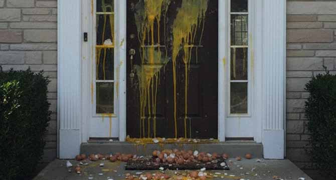My front door was smeared with eggs. Thick, yellow yolks dripped down the white paint like tears. Broken shells clung to the wood, crunching under my slippers as I stepped closer. There was garbage scattered all across my porch, including crumpled paper, an empty soda can, and even a banana peel.