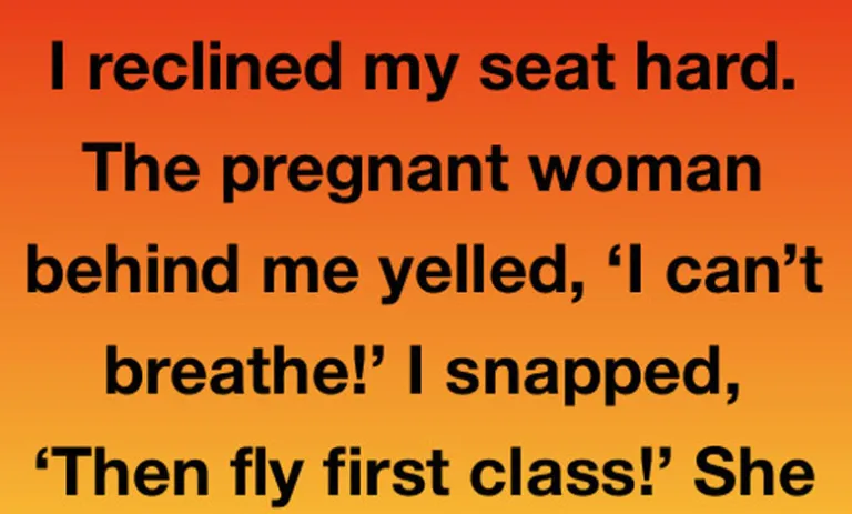 I reclined my seat hard. The pregnant woman behind me yelled, ‘I can’t breathe!’ I snapped, ‘Then fly first class!’ She went silent. After landing, a flight attendant approached me quietly and firmly said, ‘Sir, there’s a