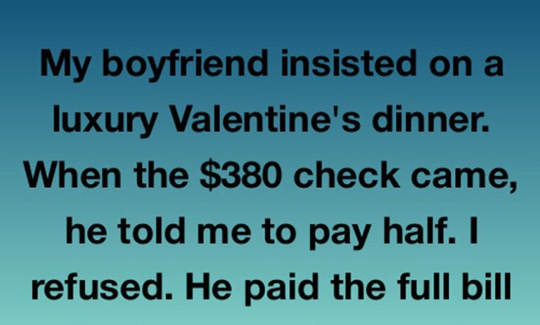 My boyfriend insisted on a luxury Valentine’s dinner. When the $380 check came, he told me to pay half. I refused. He paid the full bill in silence, got up, and walked out. The waitress came up and whispered, “Your boyfriend left a note.” My heart dropped when I read it. It said, “Since you don’t believe in investing equally, maybe you’re not ready for a partnership. Think about that.”
