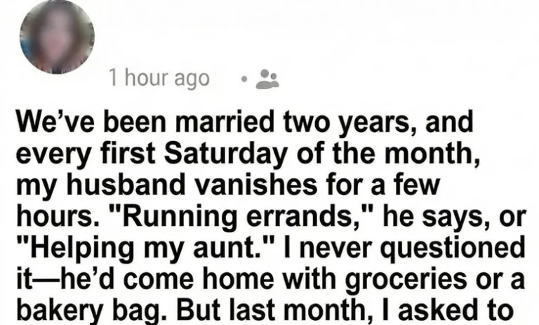 Post Views: 308 For two years of marriage, there was one small pattern I never questioned. On the first Saturday of every month, my husband would leave for a few hours with a vague explanation — errands, family obligations, nothing dramatic. He always came back with something ordinary in his hands: groceries, pastries, small proofs […]